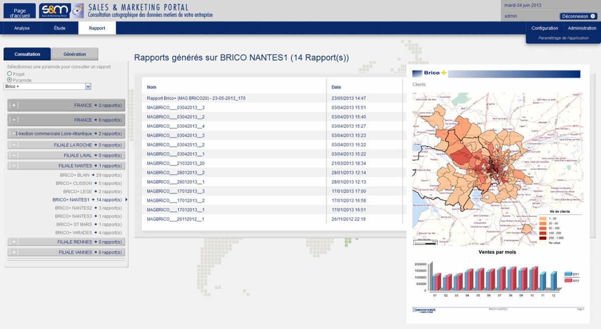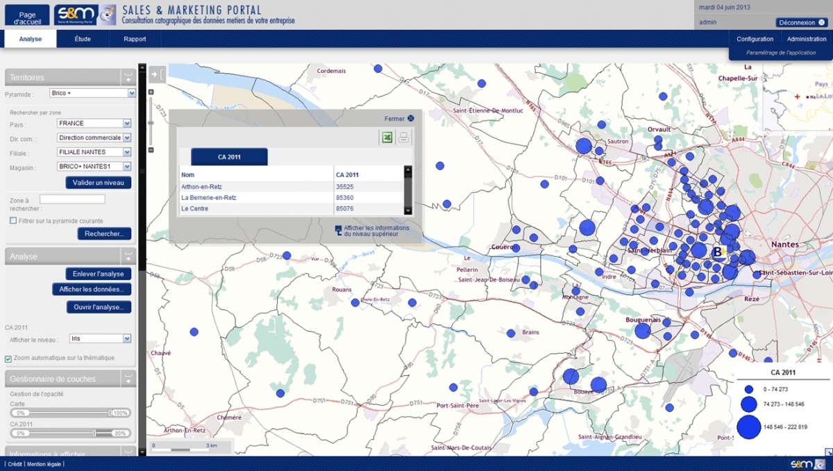 Geoconcept Sales & Marketing Portal est une solution collaborative de création et de partage d’informations et d’analyses géographiques. Par son ergonomie intuitive, sa capacité de traitement, ses performances d’analyse et la sécurité des informations manipulées, Geoconcept Sales & Marketing Portal fait figure de référence dans le domaine des solutions de Business Intelligence géographique. Véritable outil d’aide à la décision, Geoconcept Sales & Marketing Portal est la solution de diffusion phare de la gamme géomarketing Geoconcept.
