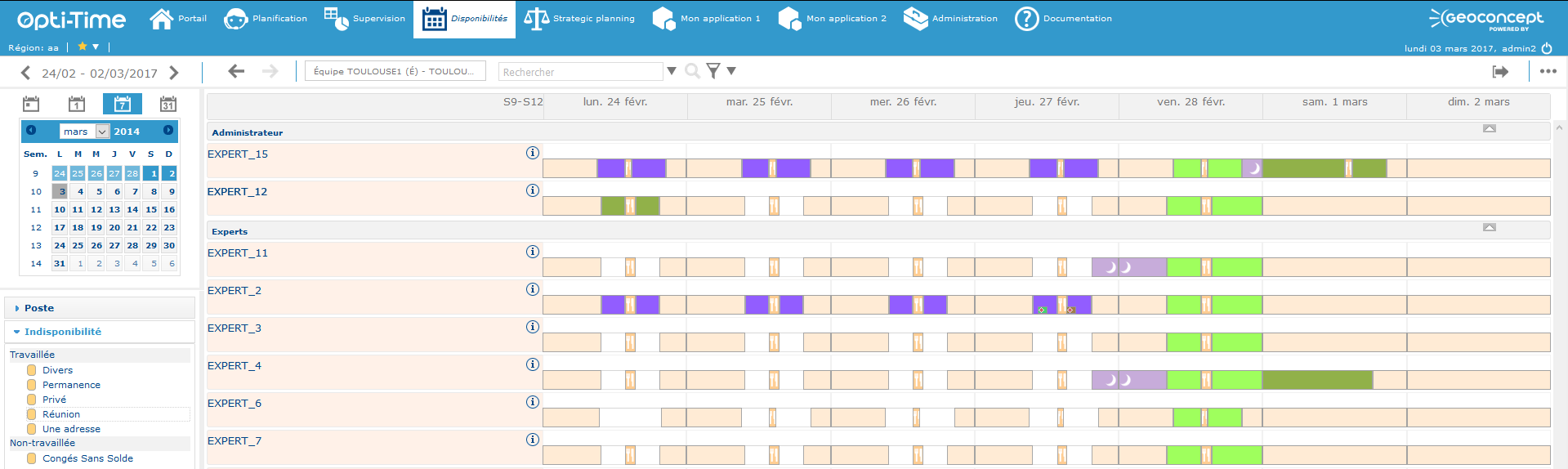 D’équilibrer la charge de travail de ses équipes sur les semaines et mois à venir : Le module de planification à long terme, module Strategic, introduit une nouvelle notion : la planification prédictive. Grâce à ce module, le planificateur anticipe l’activité et redéfinit le planning prévisionnel des activités récurrentes en équilibrant de manière optimale la charge de travail entre les intervenants. Ce planning optimisé à long terme peut ensuite être modifié manuellement par le planificateur pour plus de personnalisation : affectation d’une tâche à une autre ressource, décalage d’un rendez-vous dans le temps…