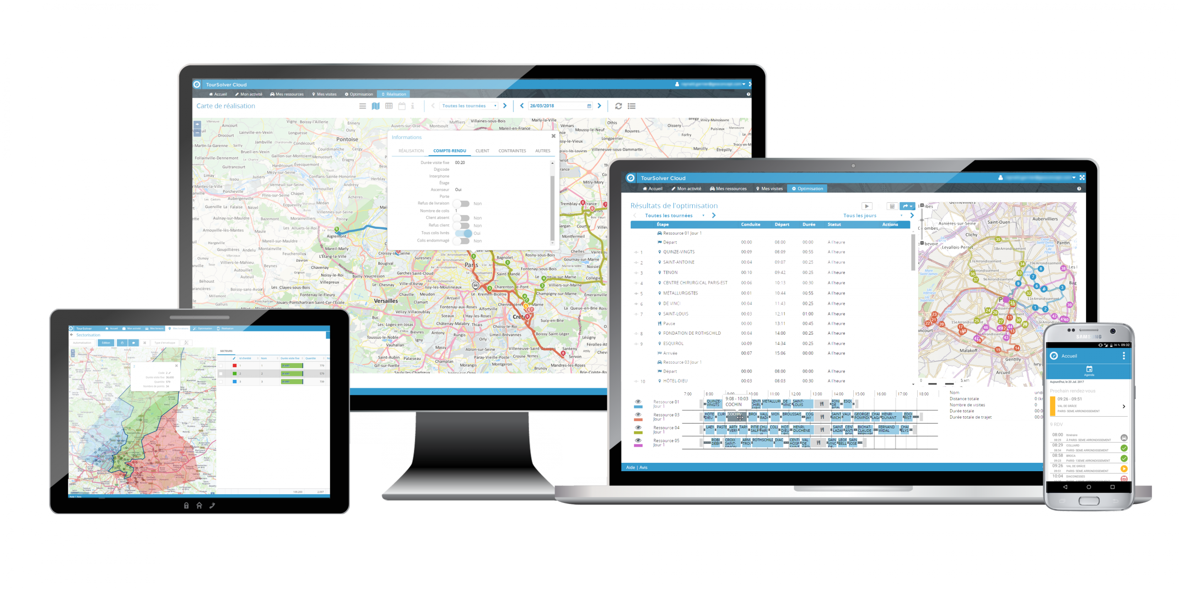 L’optimisation de tournées consiste, à partir d’une liste de points à desservir, d’actions à effectuer, et de ressources susceptibles d’accomplir ces actions, à associer les ressources aux actions, et à trouver l’ordre optimal pour la réalisation de ces actions. Une optimisation de tournées performante vise à définir les déplacements optimisant dans l’espace et dans le temps une série de contraintes posées par l’utilisateur, son métier et ses clients :